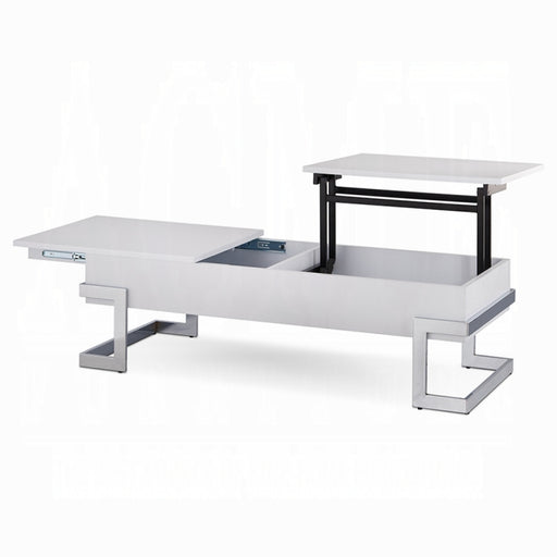 The Calnan coffee table has it all, good looks with its chrome modern legs exposed on the outside of a white box top. Full of surprises, like lift ...