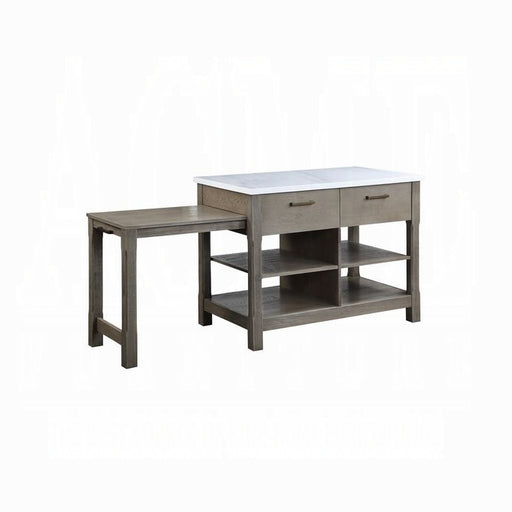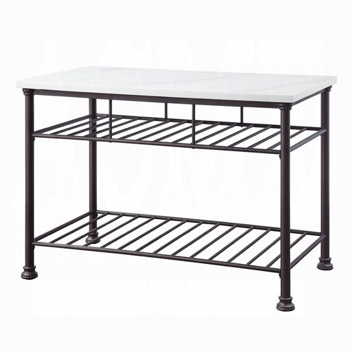 ACME Lanzo Kitchen Island (Counter), Marble & Gunmetal, 50" x 28" x 36"H, 119Lbs. The Lanzo kitchen cart is a harmonious blend of form and func...
