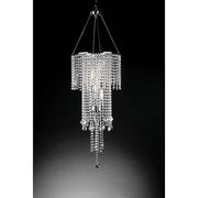 Hundreds of crystal droplets cascade off this chandelier and taper into a single shaped glass jewel.