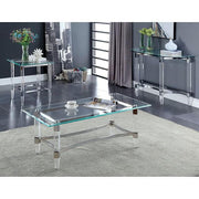 Ghost tables have been getting more and more popular because they look amazing and they open up a room by allowing light to move freely creating a sense that the space is larger. The frame is constructed of a chrome finished metal stretcher with sturdy acrylic legs. The table tops are 10mm tempered glass making it the perfect barely there coffee table for your home.