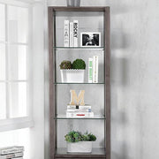 Tienen Gray Pier Cabinet, 24"W X 14"D X 78"H, 99.44lbs. Curate your living space for the ultimate gaming and entertainment experience. The gray finished entertainment set creates cool tones that instill a relaxing ambiance. Intricate wavy designs create texturized patterns, adding chic edgy detailing. Sim ply organize with glass paneled cabinets and open shelves that frame the structural design while displaying collectibles in the glass-framed curio and complete the aesthetic with your TV perfectly centered for a seamless entertainment experience. Features: Transitional Style 8mm Tempered Glass Shelves Storage Drawers & Shelves Solid Wood, Wood Veneer, Others Gray Finish