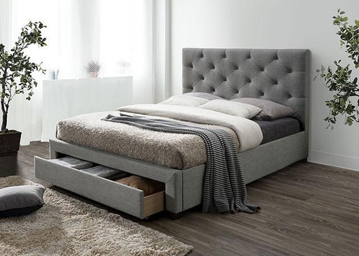 FOA WestSYBELLA Cal.King Bed, Gray, 91"L X 74 5/8"W X 46 1/2"H, 182.6lbs. Comfort and functionality are the hallmarks of this fully upholstered, mattress-r...