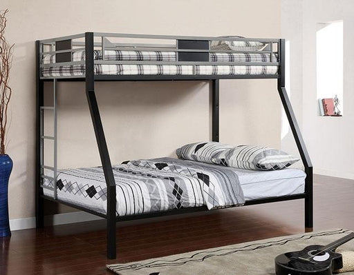 FOA WestClifton Silver/Gun Metal Twin/Full Bunk Bed, 78 3/8"L X 55 7/8"W X 66 1/2"H, 117.7lbs. Simple, clean lines create an ultra modern look with the sil...