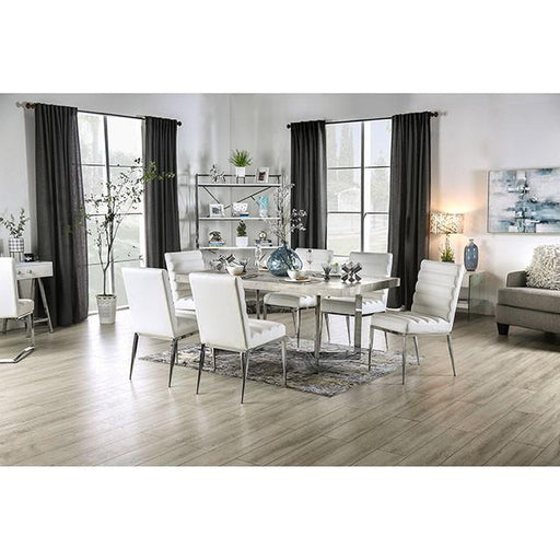 FOA WestSINDY Dining Table, 72"L X 38 1/4"W X 30 1/4"H, 111.63lbs. Uniquely designed closed chrome metal legs highlight this rectangular dining table with ...