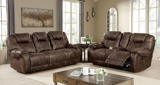 FOA WestSmooth and curved lines blend effortlessly with one another in the form of this transitional living collection. The loveseat has built in recliners...
