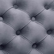 WADENSWIL Side Chair, 20 3/4"W X 26 1/2"D X 38"H (SEAT HT: 19", SEAT DP: 18 1/2"), 58.7lbs. How about a modern marvel on your very own dining space? This brilliant piece features an upholstered gray velvet fabric padded seat held up by two legs finished in chrome. Edges have welt trim, while the unique backside features beautiful, deep button-tufting.