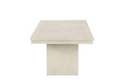 Table, Chairs and Bench, Modern Farmhouse, Rubberwood, Engineered Wood, Foam, Fabric, Mindi Veneer, Natural, Table Extendable w/ Leaf, Plinth Base, Felt-Lined Top Drawer, Black Iron Handle, Metal Side Glide, Soft-Closing Door in Server